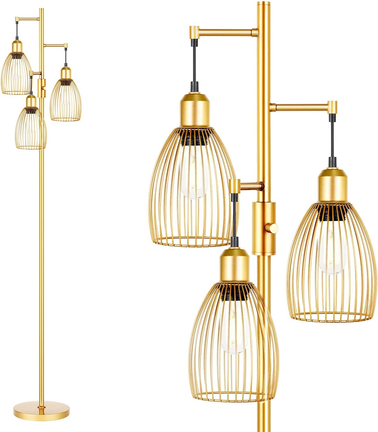 Nintiue Dimmable Floor Lamp, 3 x 800LM LED Edison Bulbs