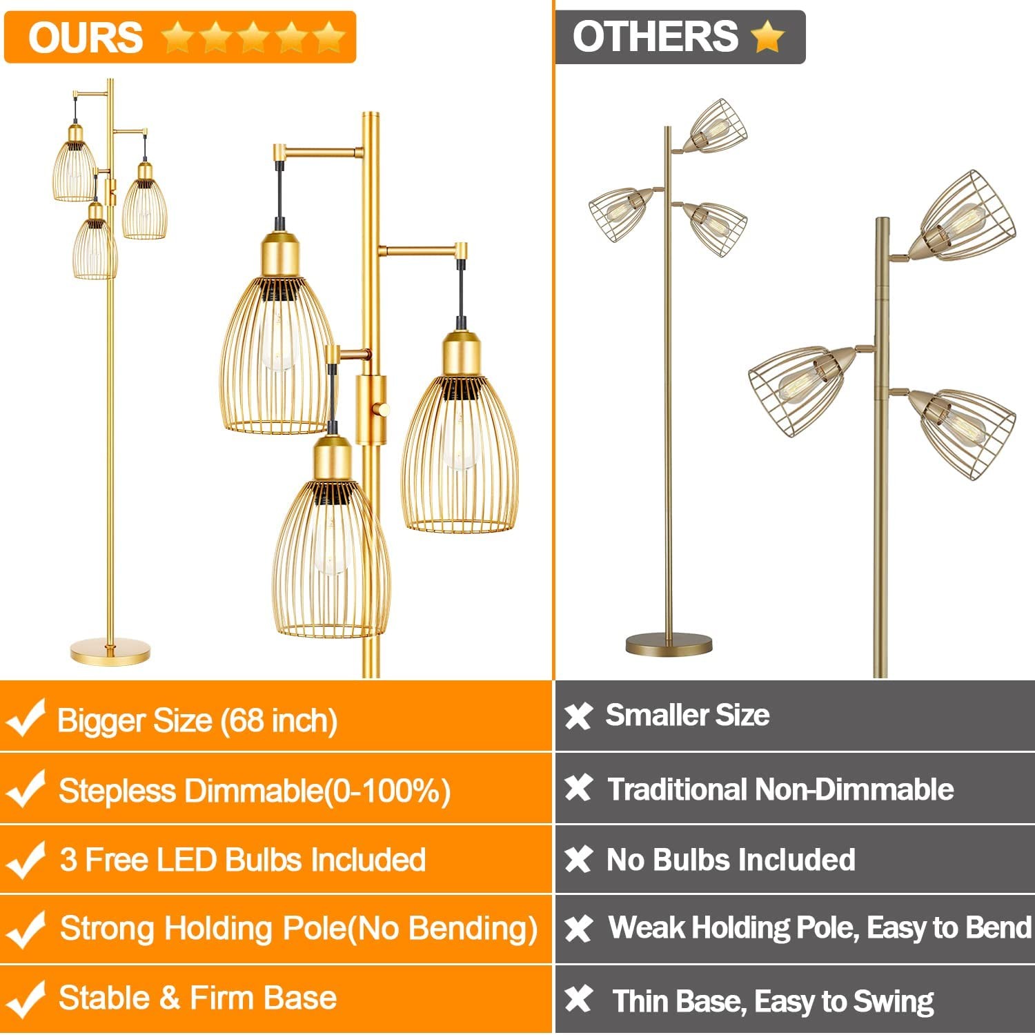 • 【36 Months Warranty】We proudly back all our products, that's why we offer a full 36 months warranty. Everything you need for assembly is included in the package; no additional tools are required to install! If your light has any defects or stops working within 3 years, we'll help you troubleshoot or send a brand new product. (If you have any questions about our standing lights, please be sure to tell us, we will contact you as soon as possible and help you)